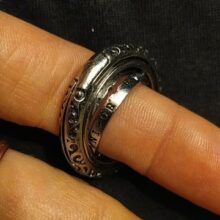 Unravel old-world scripture and wonder with this one-of-a-kind accessory. Stylish and fit for men (and women), this triple-layer ring brings old-world charm for a standout ring unlike any other. The ring’s three layers can also be opened up as a necklace pendant. Pure-silver construction promises premium craftsmanship for a ring above all others — with a design story like no other.