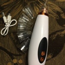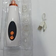 Each Electric Rechargeable Blackhead Remover comes with a USB charging cable and six extra nozzle heads to treat the face and body.