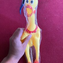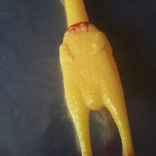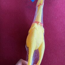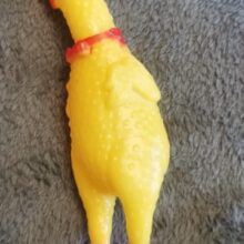 There isn't much to say. It's a yellow rubber chicken. It looks just like the picture and arrived as promised. Dog very much liked