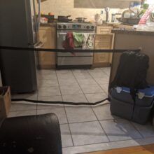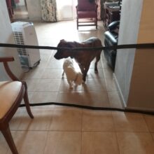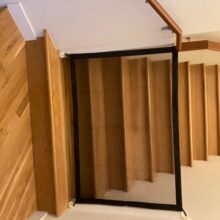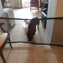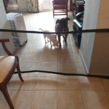 Well, here’s one way to keep your pooch in place. With no running around the house or walking into the room of construction. Our Portable Safety Net is the easiest and most convenient way to keep your dog from freely wandering around the house. It’s perfect for doorways, between walls, or even stairwells. And when it’s time to let your dog run free, simply move the net.