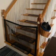 I was looking for a gate to put at the top of a staircase that is not a straight opening, but has an angled opening that a standard expansion gate would not work on. This gate fit perfect in that angle! It is lightweight gate and it is very easy to store when not in use – just take down completely and fold or roll up on side and attach it to the other side. You will not go wrong with the purchase of this gate.